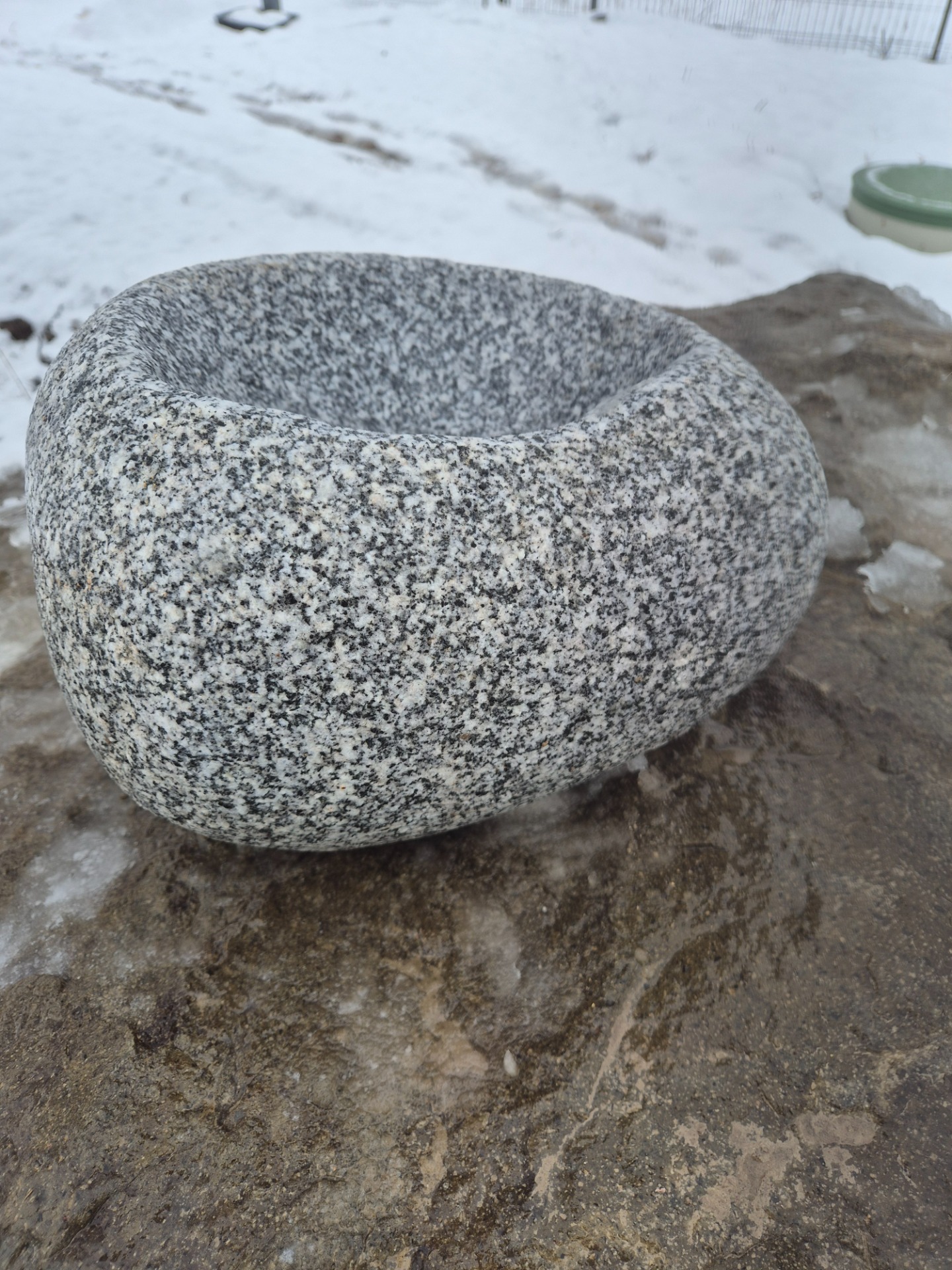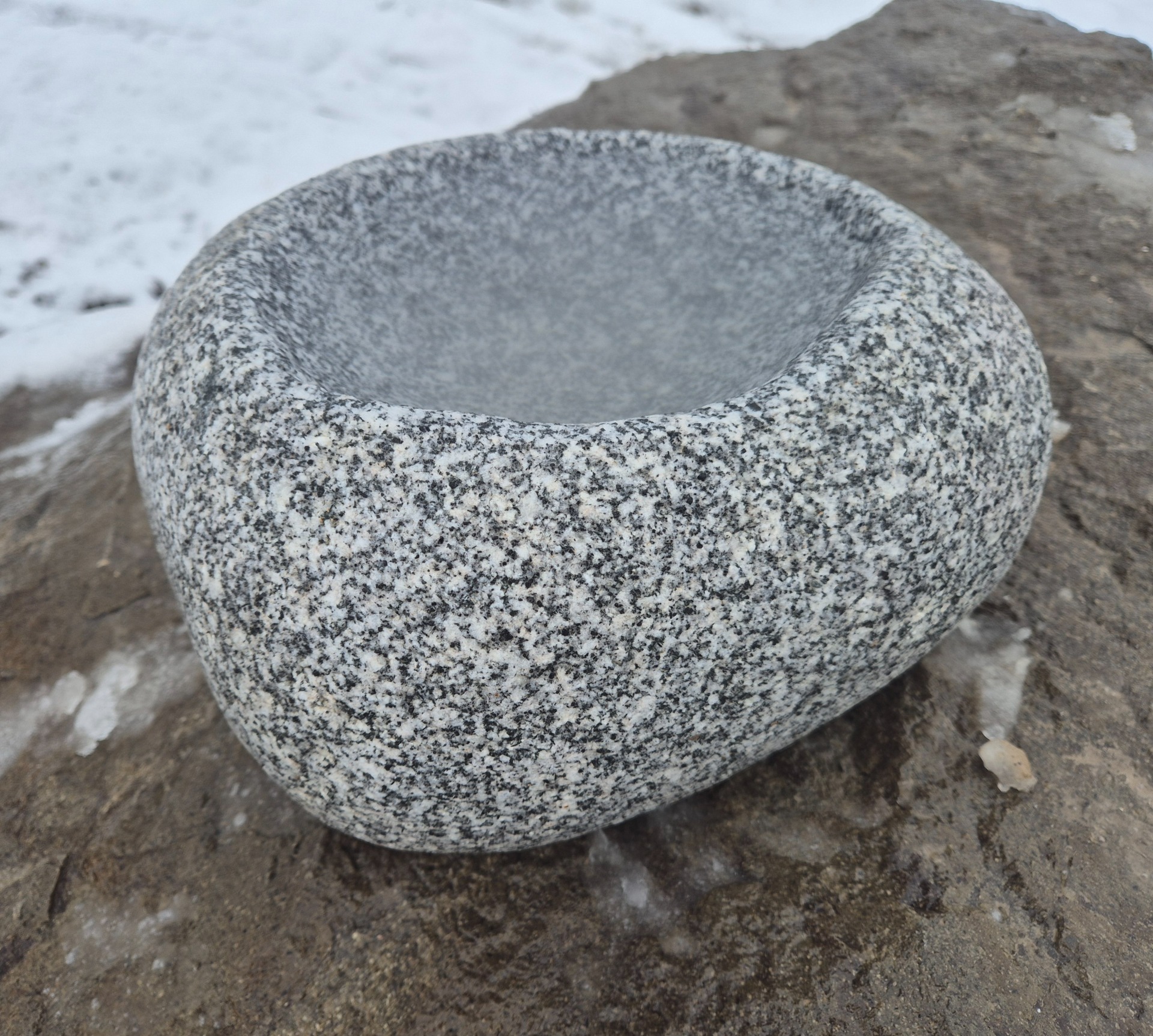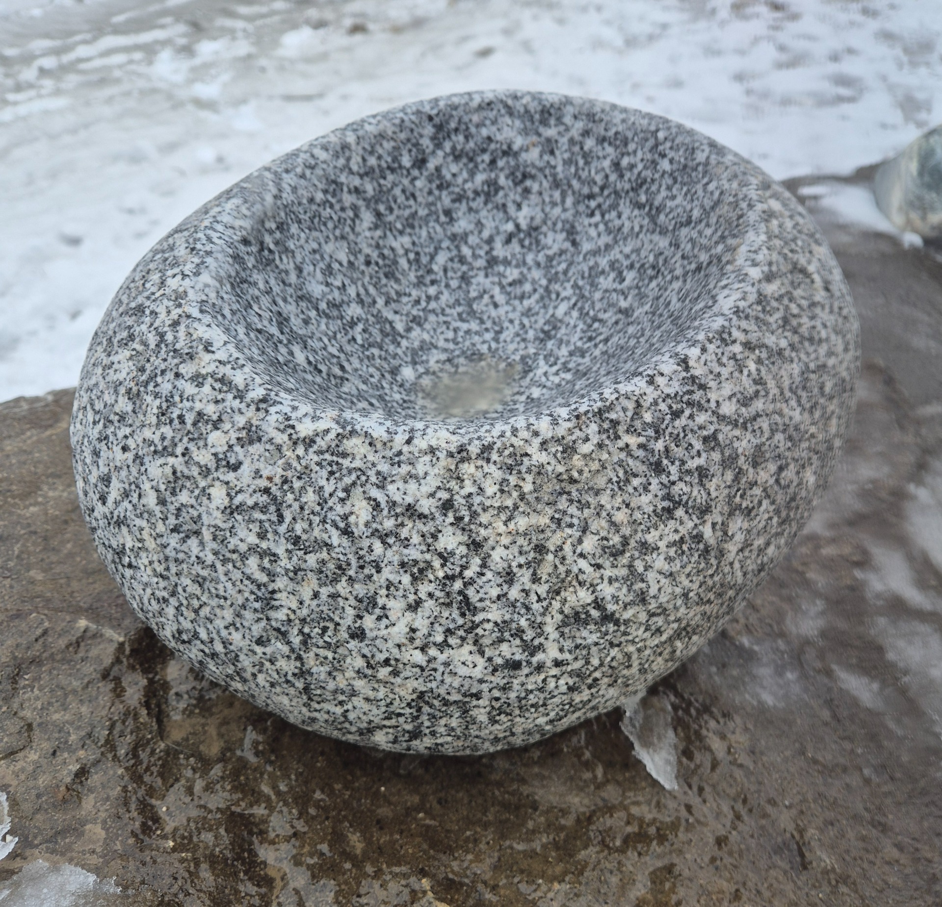 Faragott gránit kőtál ~35 cm átmérőjű görgeteg kőből